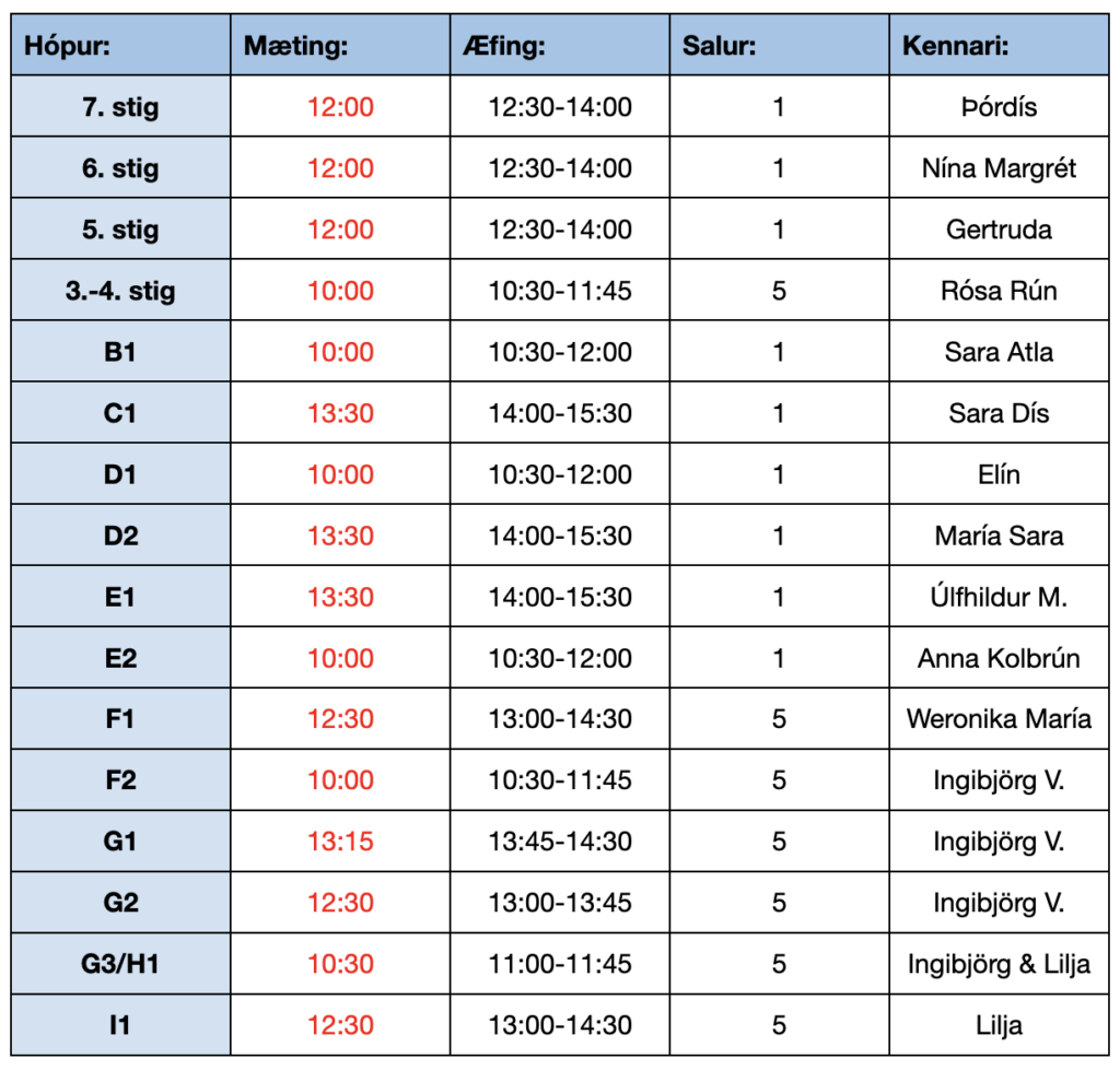 Upplýsingar um niðurröðun hópa á sýningardaga má finna HÉR